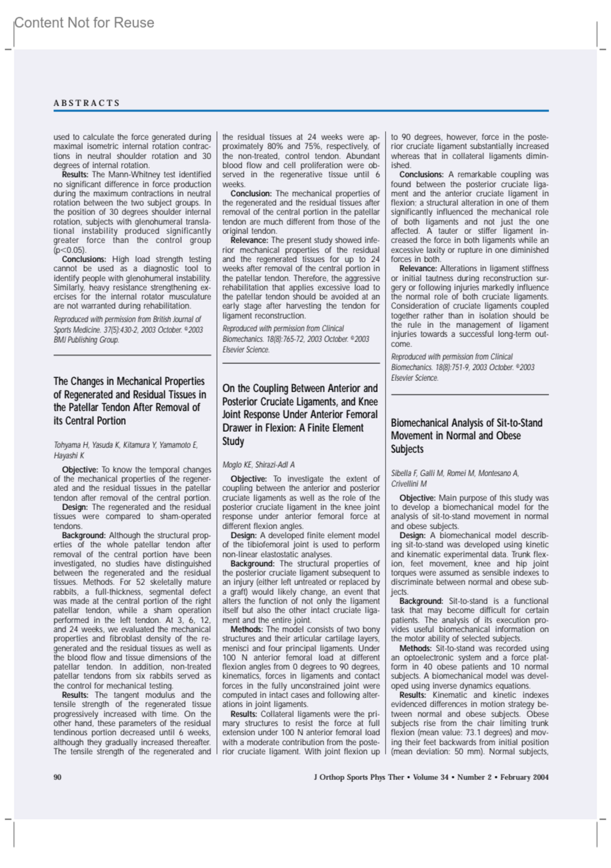 Journal of Orthopaedic & Sports Physical Therapy 34(2):p 90-91, February 2004.