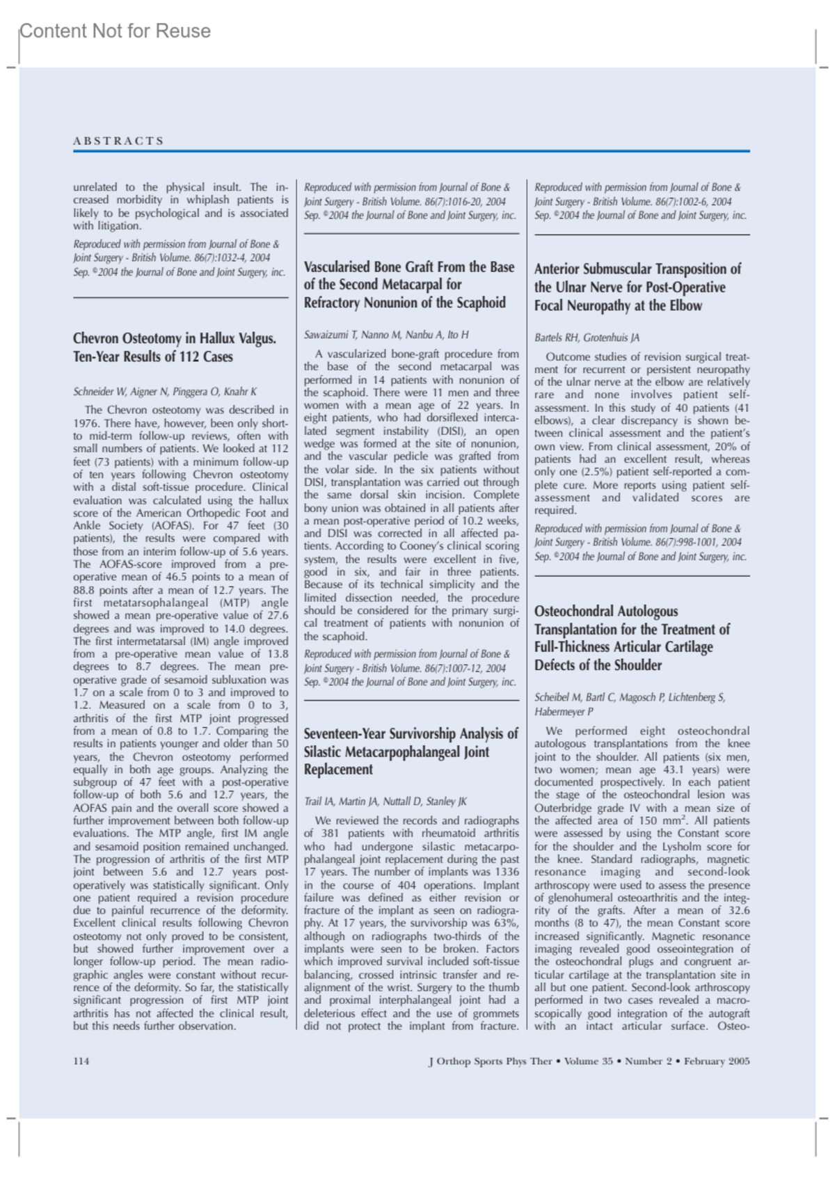 Journal of Orthopaedic & Sports Physical Therapy 35(2):p 114, February 2005.