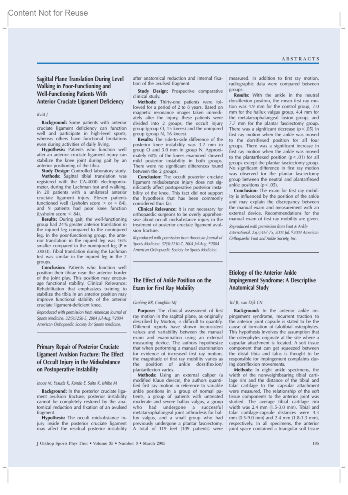 Journal of Orthopaedic & Sports Physical Therapy 35(3):p 185-186, March 2005.