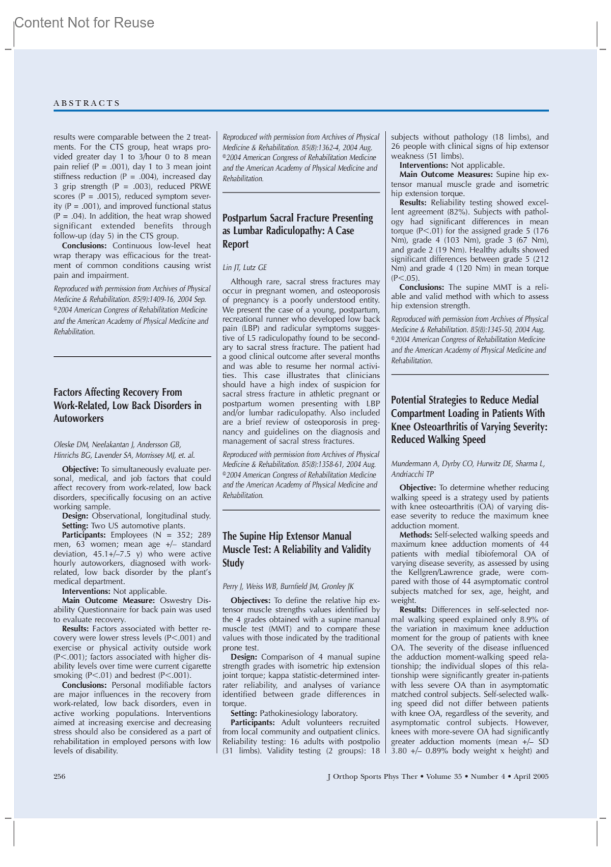 Journal of Orthopaedic & Sports Physical Therapy 35(4):p 256, April 2005.