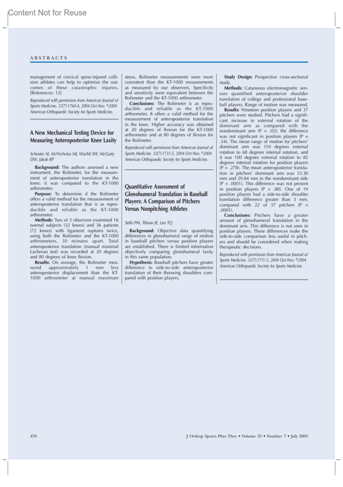Journal of Orthopaedic & Sports Physical Therapy 35(7):p 470, July 2005.