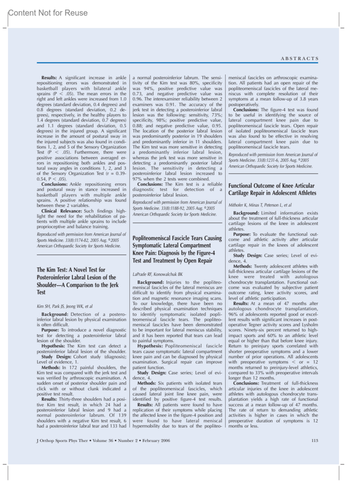 Journal of Orthopaedic & Sports Physical Therapy 36(2):p 113, February 2006.