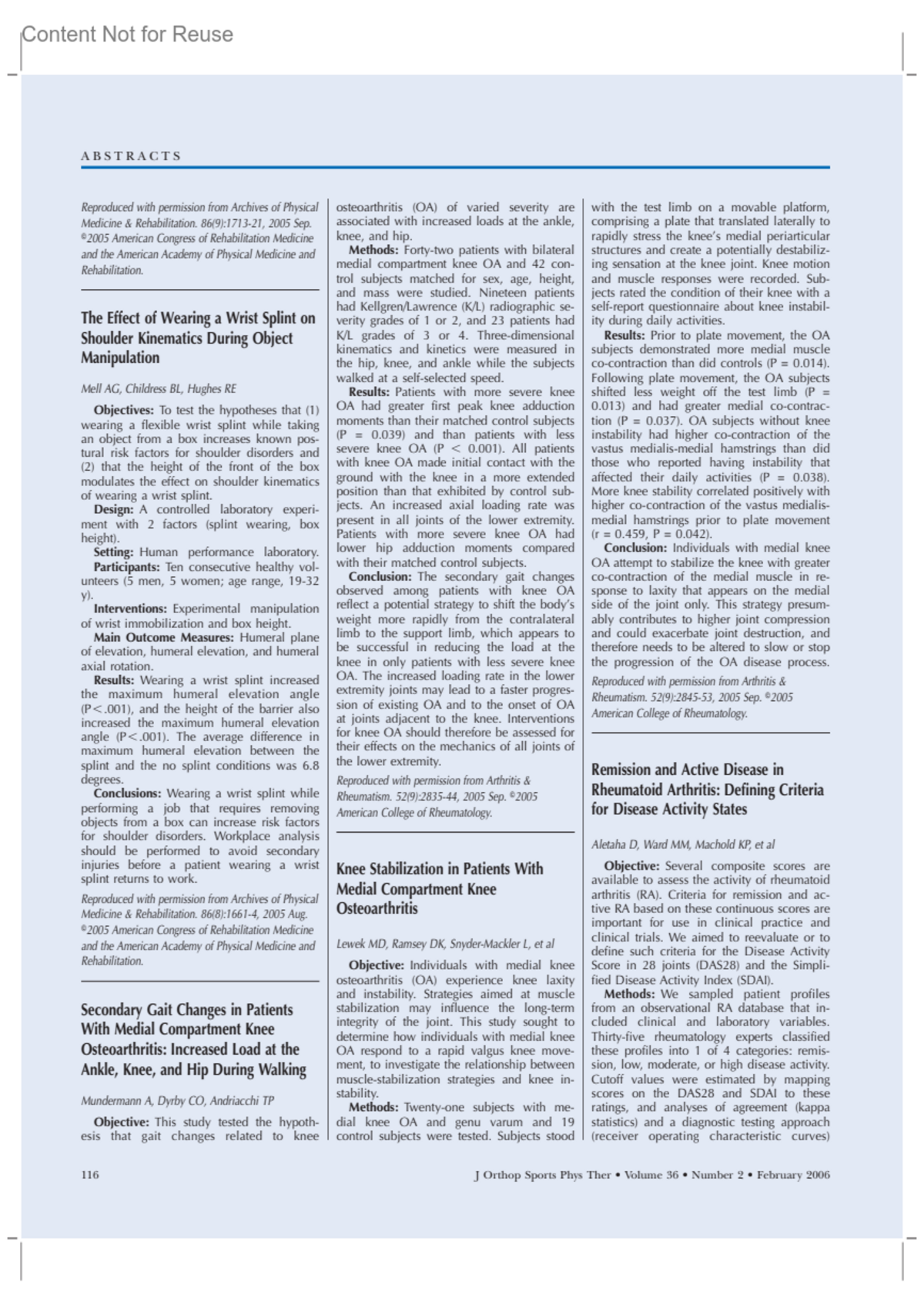 Journal of Orthopaedic & Sports Physical Therapy 36(2):p 116, February 2006.