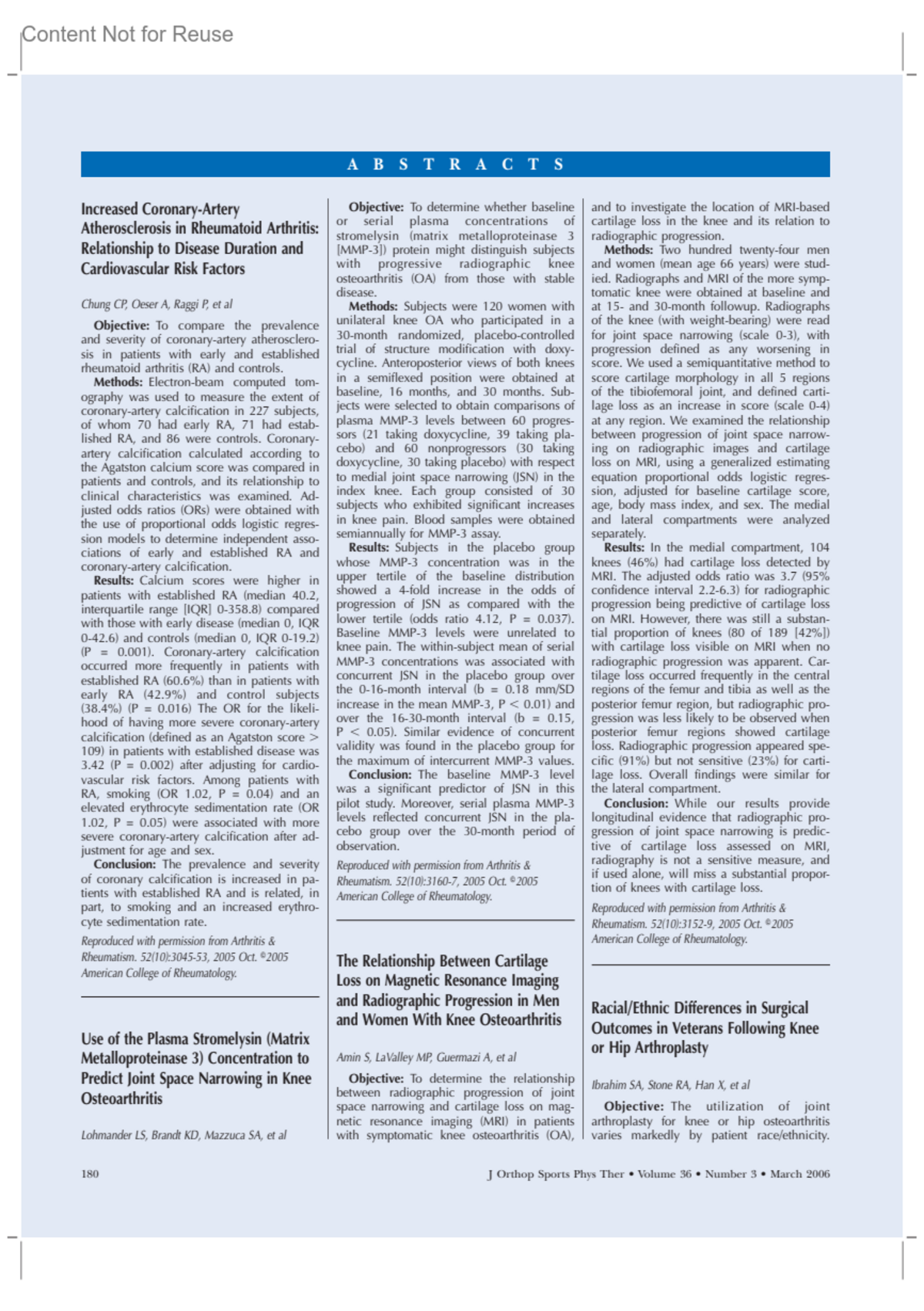 Journal of Orthopaedic & Sports Physical Therapy 36(3):p 180, March 2006.