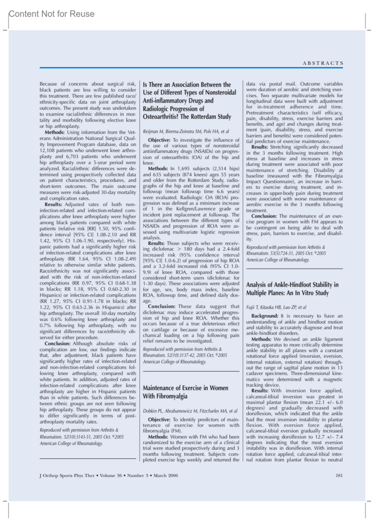 Journal of Orthopaedic & Sports Physical Therapy 36(3):p 181-182, March 2006.