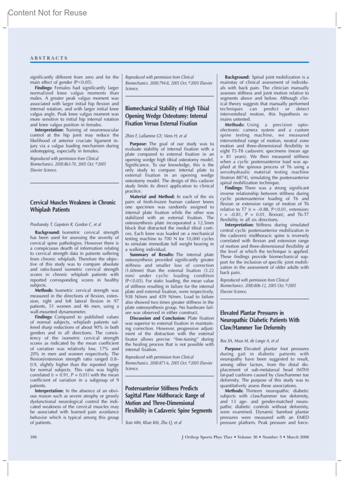 Journal of Orthopaedic & Sports Physical Therapy 36(3):p 186-187, March 2006.