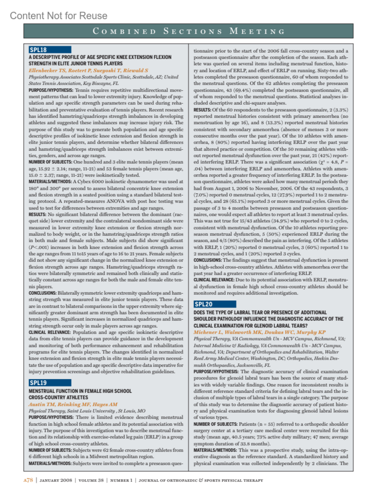 Journal of Orthopaedic & Sports Physical Therapy 38(1):p A78, January 2008.