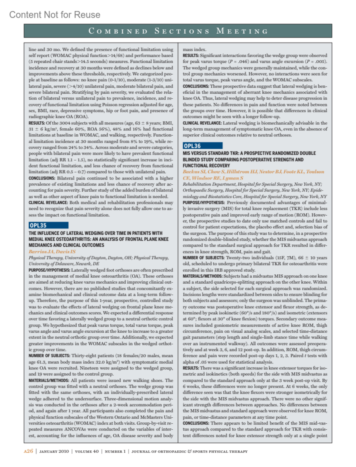 Journal of Orthopaedic & Sports Physical Therapy 40(1):p A26-A27, January 2010.