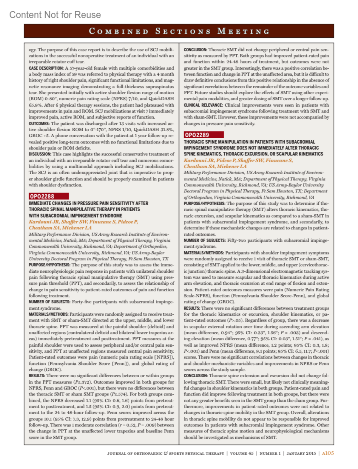 Journal of Orthopaedic & Sports Physical Therapy 45(1):p A105-A106, January 2015.