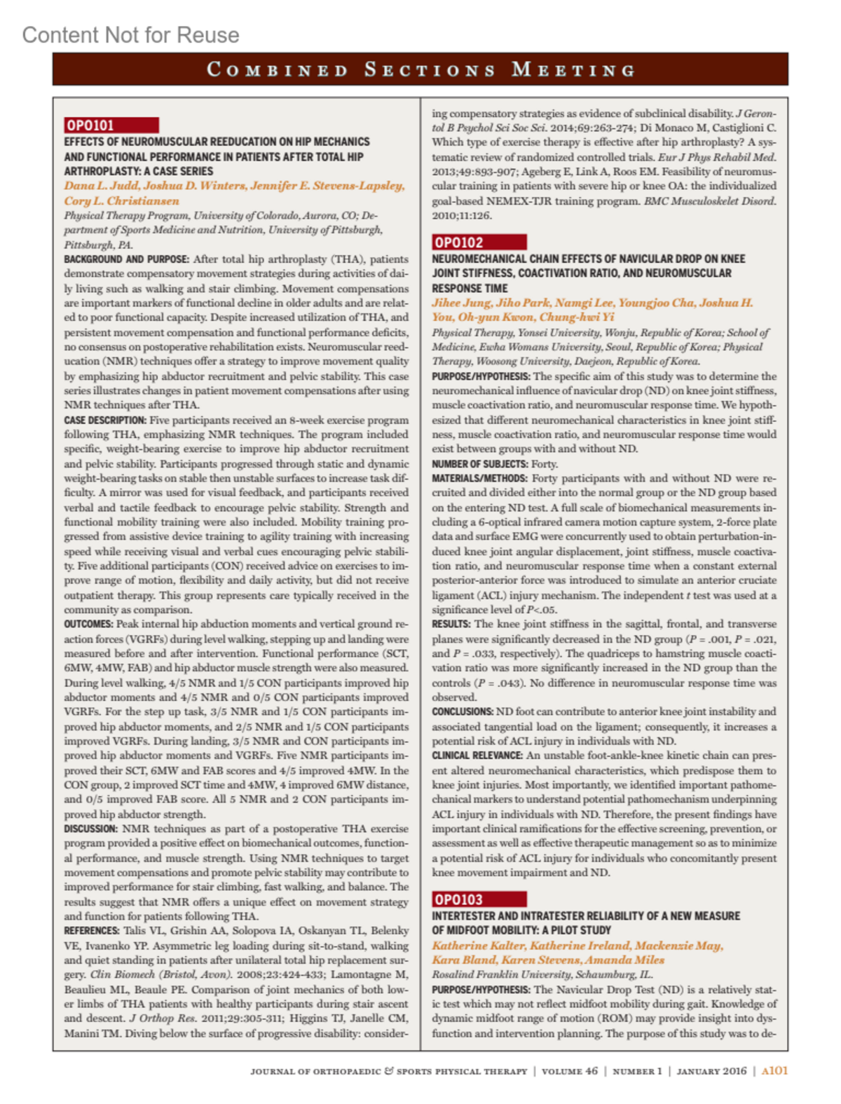 Journal of Orthopaedic & Sports Physical Therapy 46(1):p A101, January 2016.