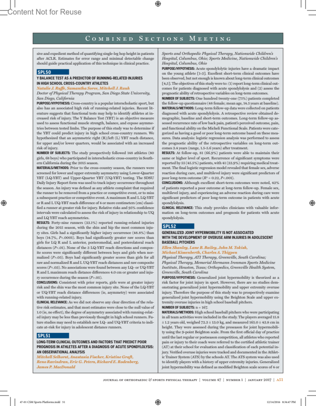 Journal of Orthopaedic & Sports Physical Therapy 47(1):p A51-A52, January 2017.