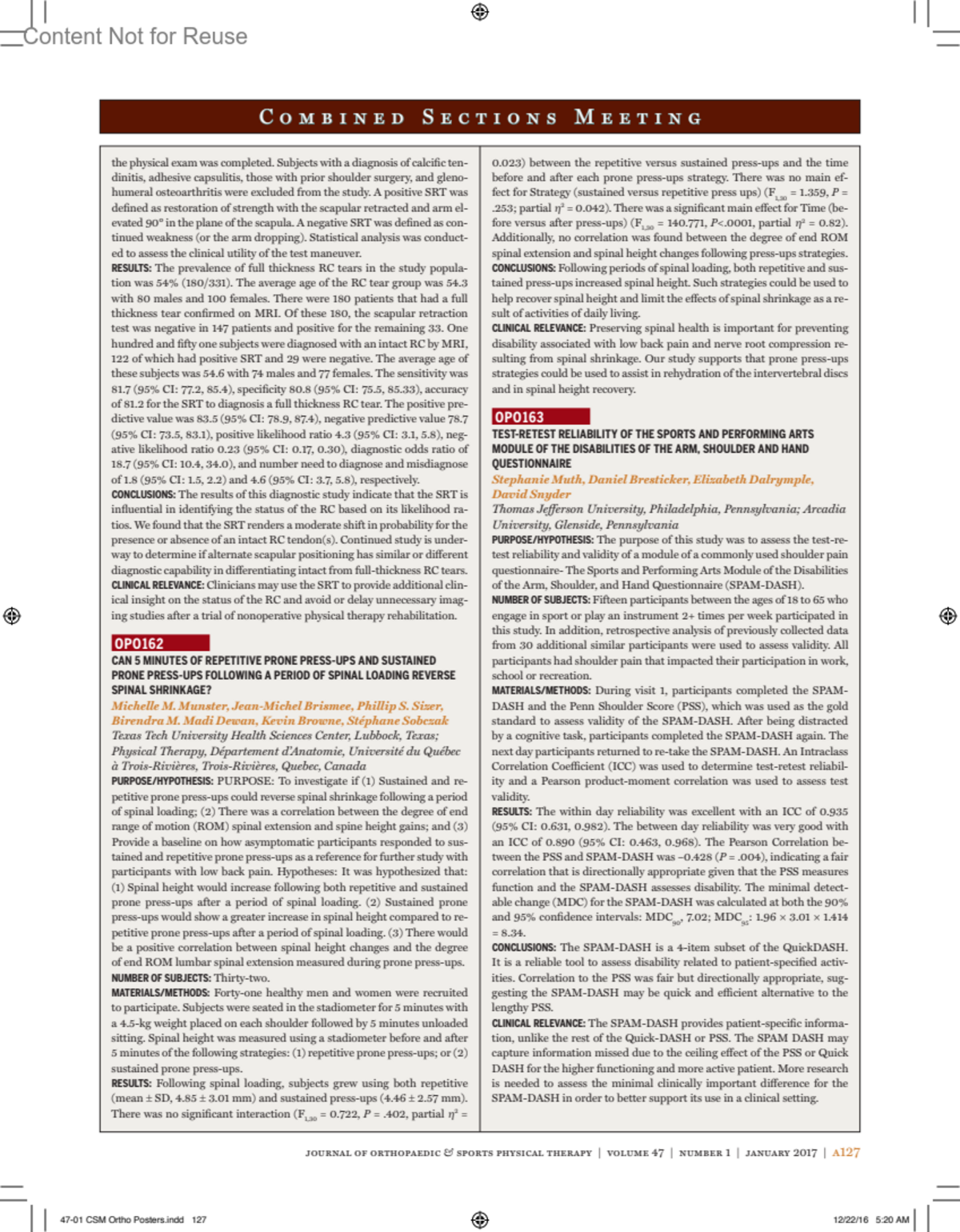 Journal of Orthopaedic & Sports Physical Therapy 47(1):p A127, January 2017.