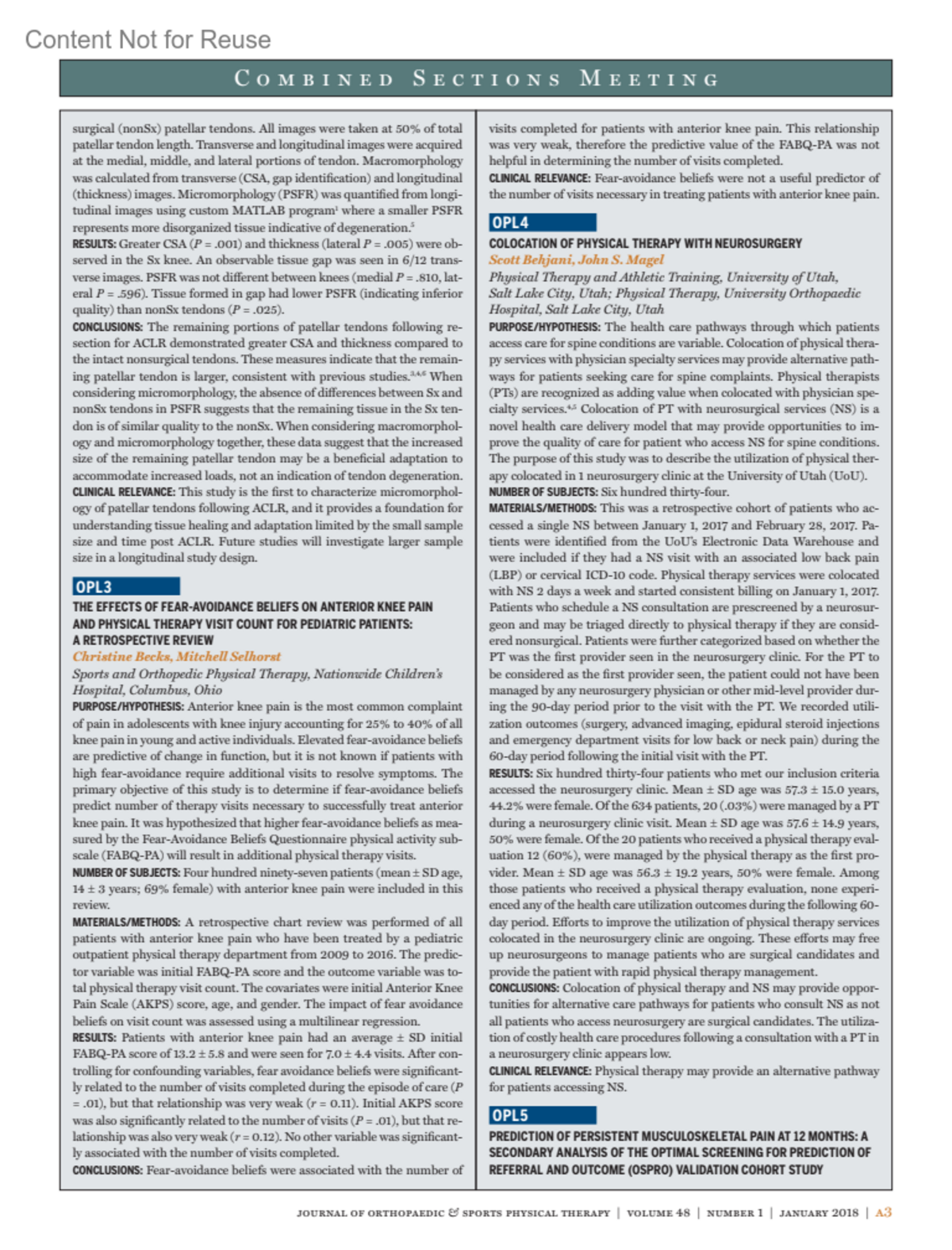Journal of Orthopaedic & Sports Physical Therapy 48(1):p A3-A4, January 2018.