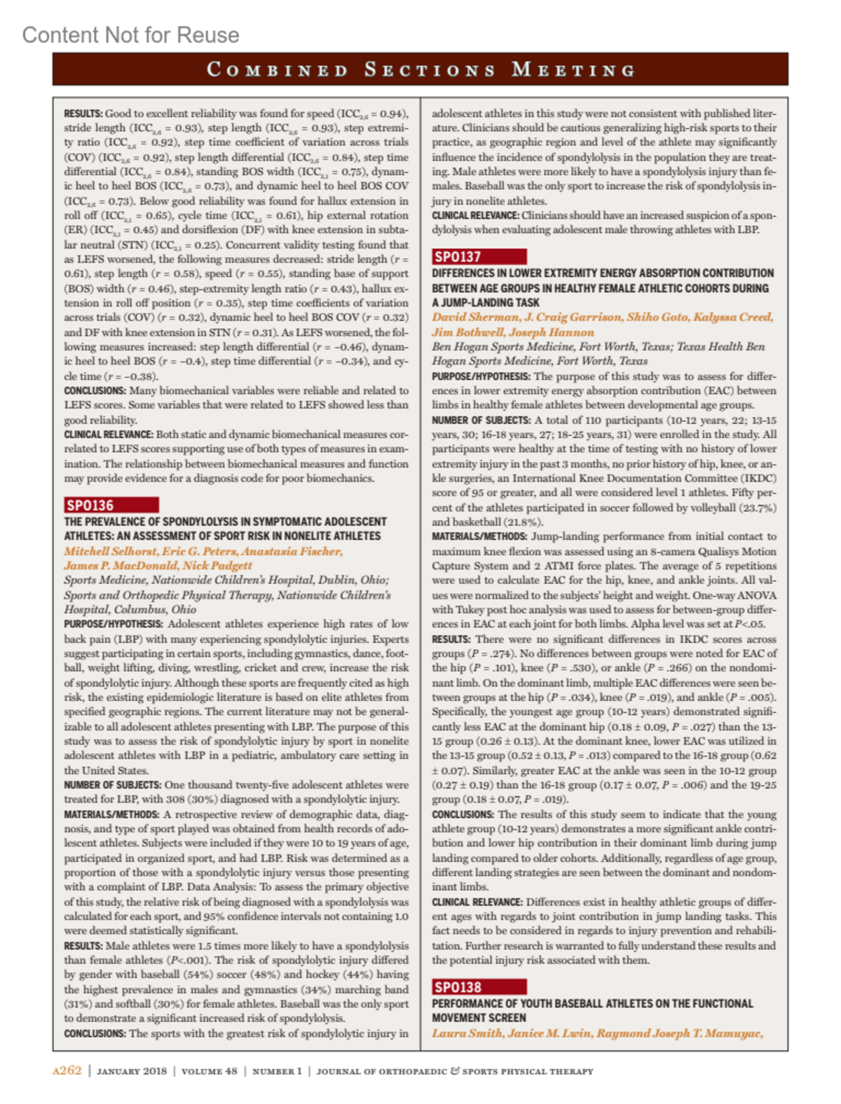 Journal of Orthopaedic & Sports Physical Therapy 48(1):p A262, January 2018.