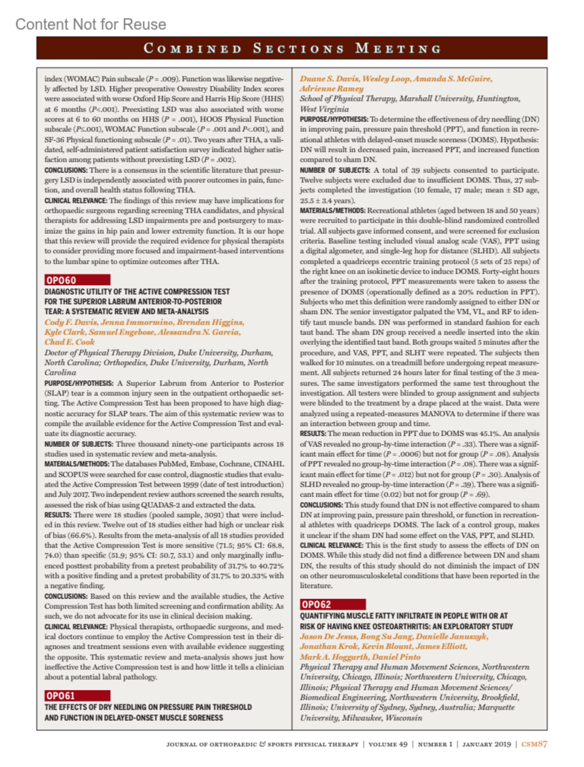 Journal of Orthopaedic & Sports Physical Therapy 49(1):p CSM87, January 2019.