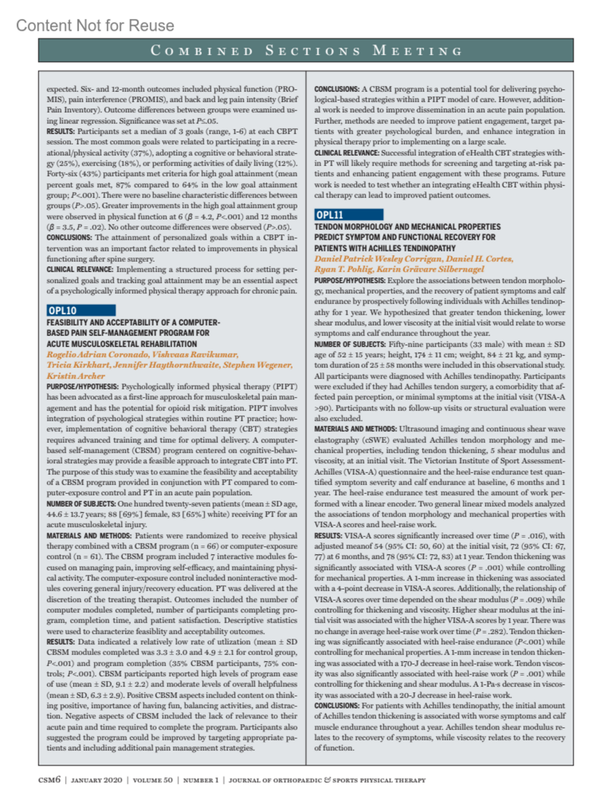 Journal of Orthopaedic & Sports Physical Therapy 50(1):p CSM6, January 2020.
