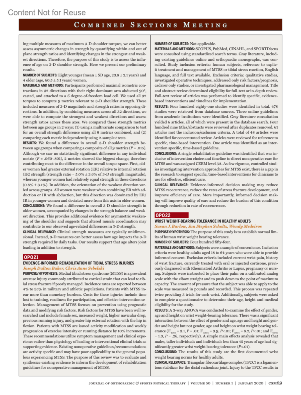 Journal of Orthopaedic & Sports Physical Therapy 50(1):p CSM89-CSM90, January 2020.