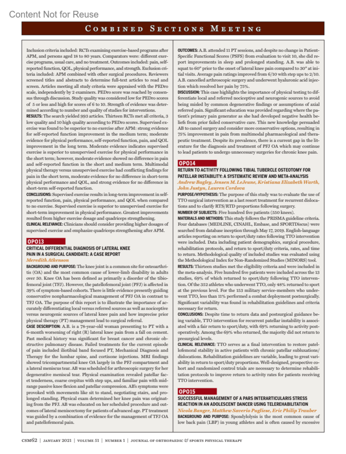 Journal of Orthopaedic & Sports Physical Therapy 51(1):p CSM62, January 2021.