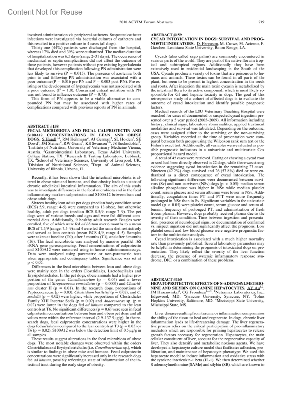 CYCAD INTOXICATION IN DOGS: SURVIVAL AND PROGNOSTIC INDICATORS.ABSTRACT #159Ferguson, DCrowe, MAcierno, MGaschen, FAuthor informationLouisiana State University, Baton Rouge, LA.Journal of Veterinary Internal Medicine 24(3):p 719, May-June 2010.Copyright © 2010 John Wiley & Sons, Inc.