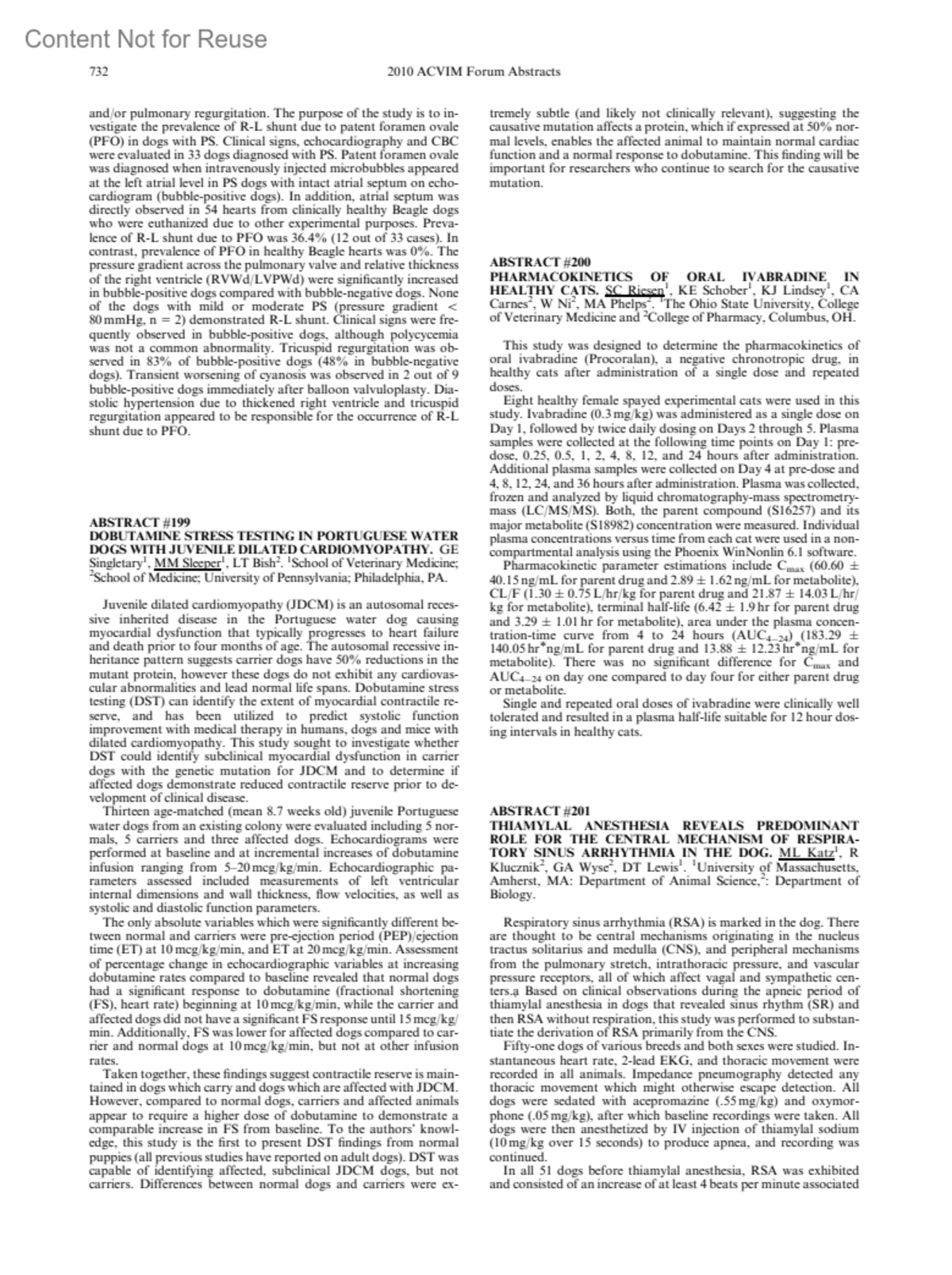 PHARMACOKINETICS OF ORAL IVABRADINE IN HEALTHY CATS.ABSTRACT #200Riesen, S CSchober, K ELindsey, K JCarnes, C ANi, WPhelps, M AAuthor information1The Ohio State University, College of Veterinary Medicine and2College of Pharmacy, Columbus, OH.Journal of Veterinary Internal Medicine 24(3):p 732, May-June 2010.Copyright © 2010 John Wiley & Sons, Inc.