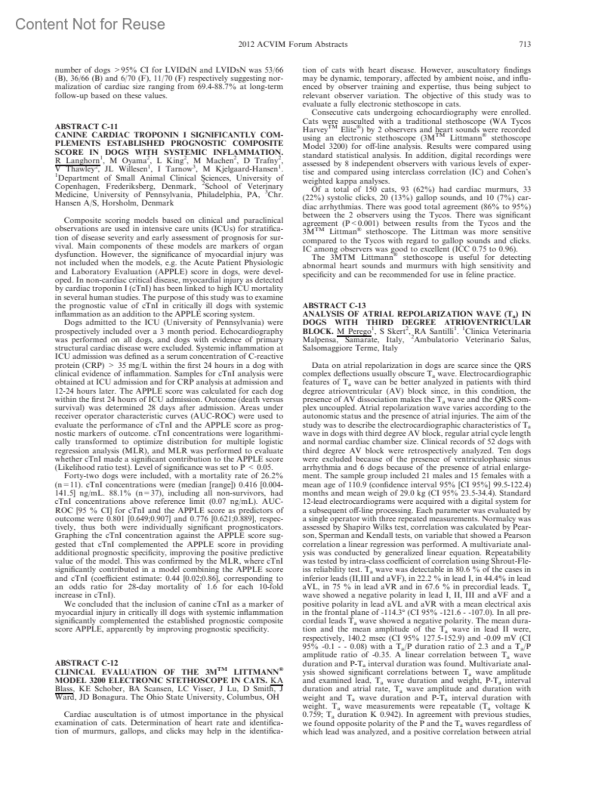 Journal of Veterinary Internal Medicine 26(3):p 713, May-June 2012.