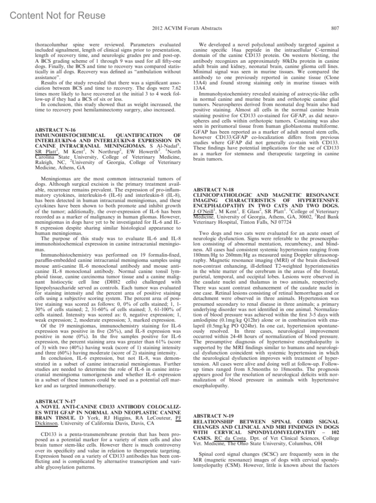 Journal of Veterinary Internal Medicine 26(3):p 807-808, May-June 2012.