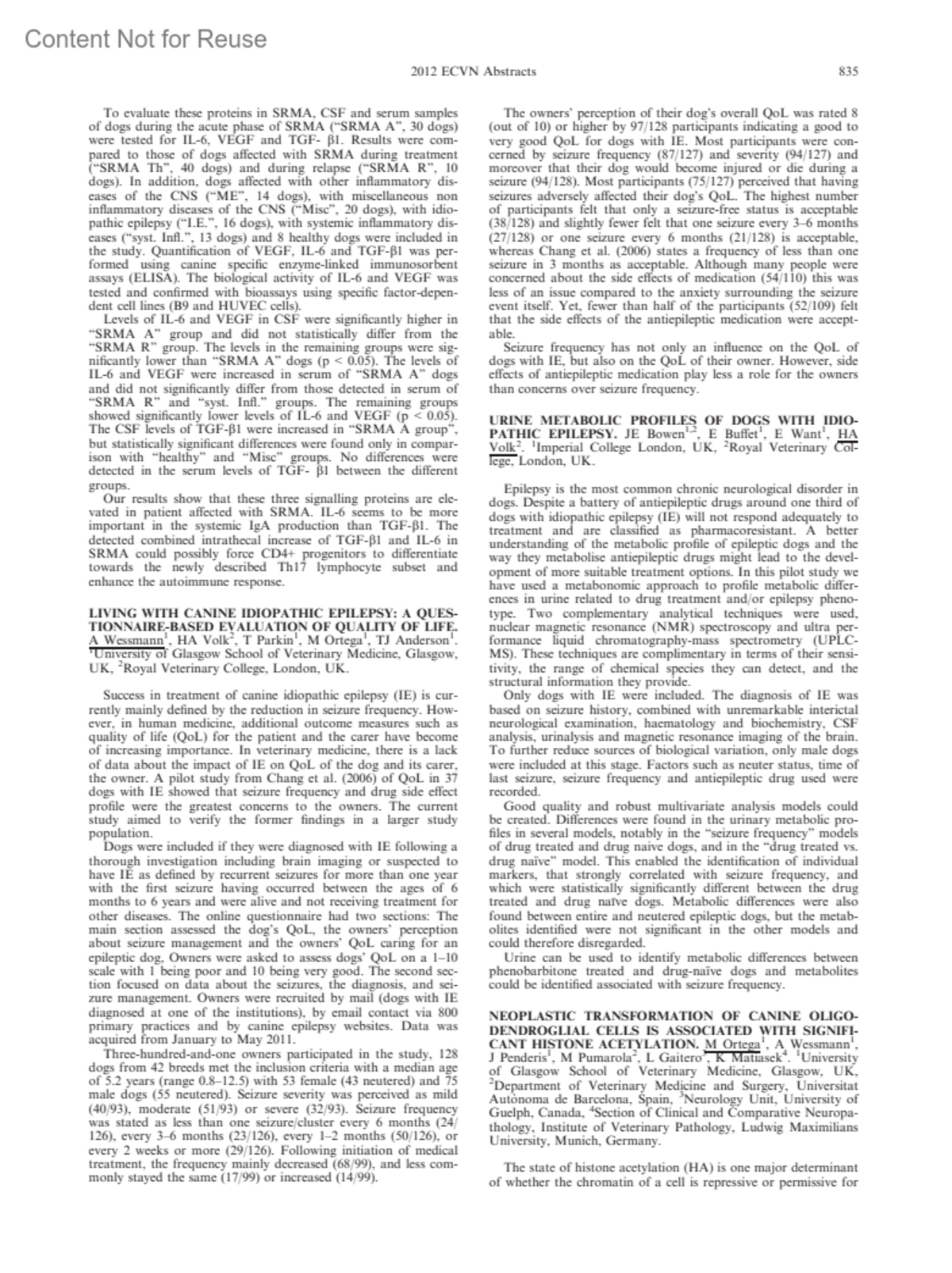 Journal of Veterinary Internal Medicine 26(3):p 835, May-June 2012.