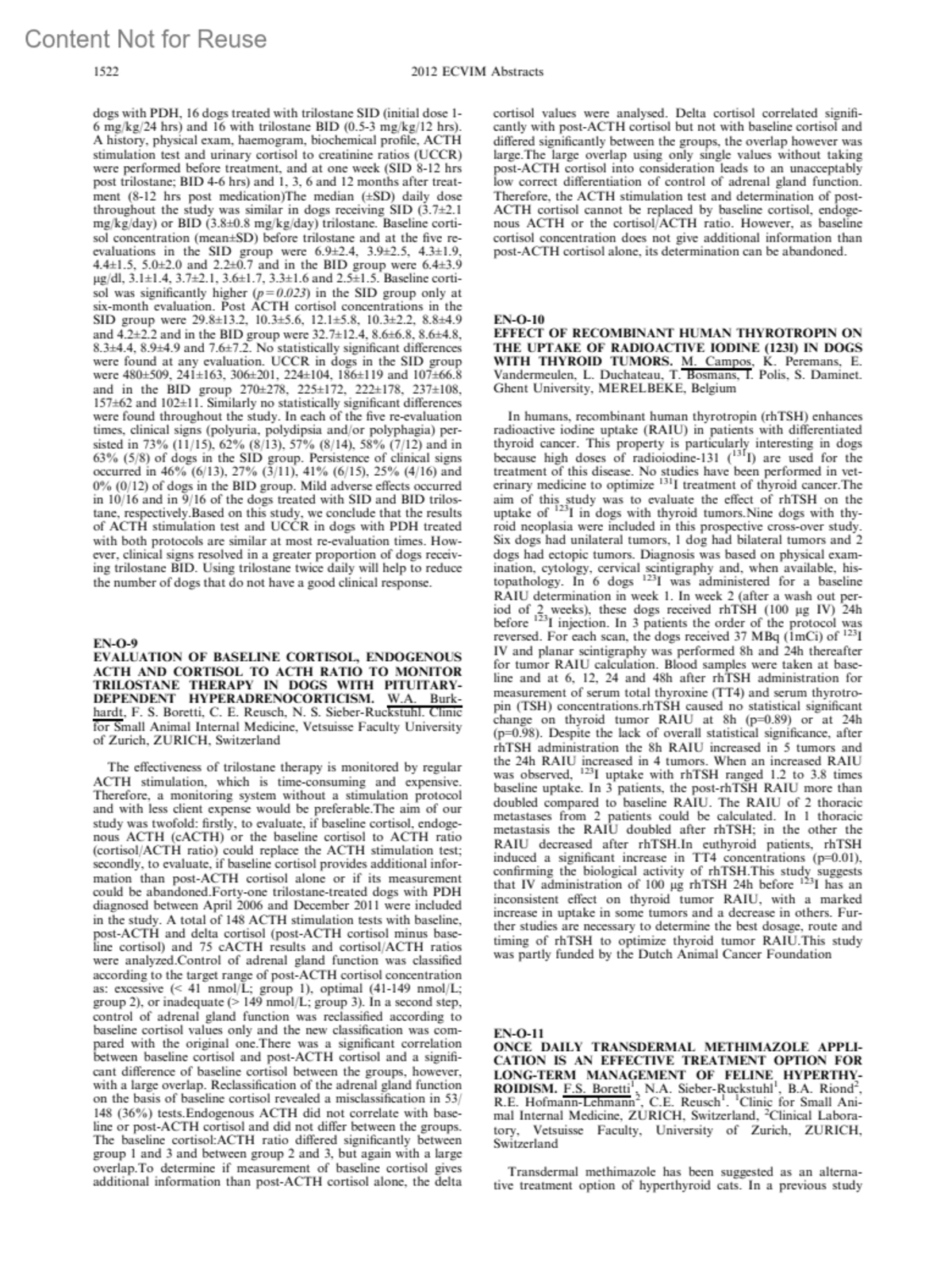 Journal of Veterinary Internal Medicine 26(6):p 1522, November-December 2012.