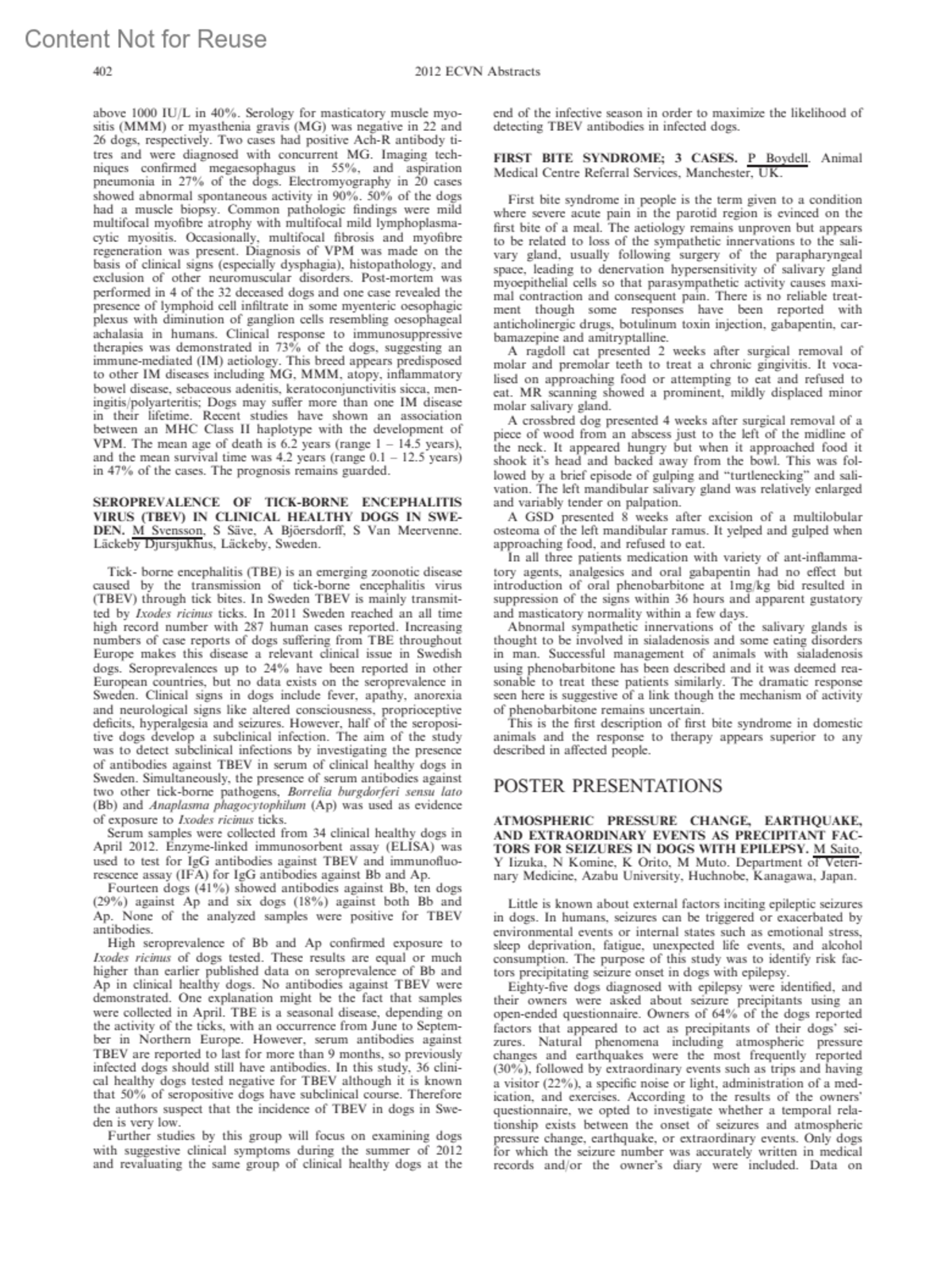 Journal of Veterinary Internal Medicine 27(2):p 402-403, March-April 2013.