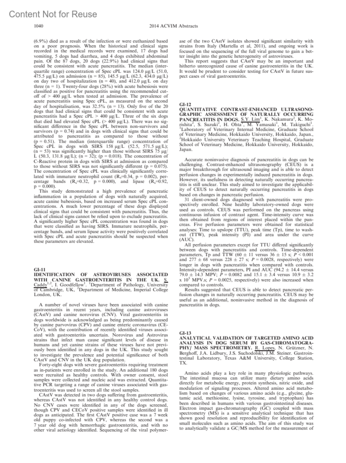 Journal of Veterinary Internal Medicine 28(3):p 1040, May-June 2014.