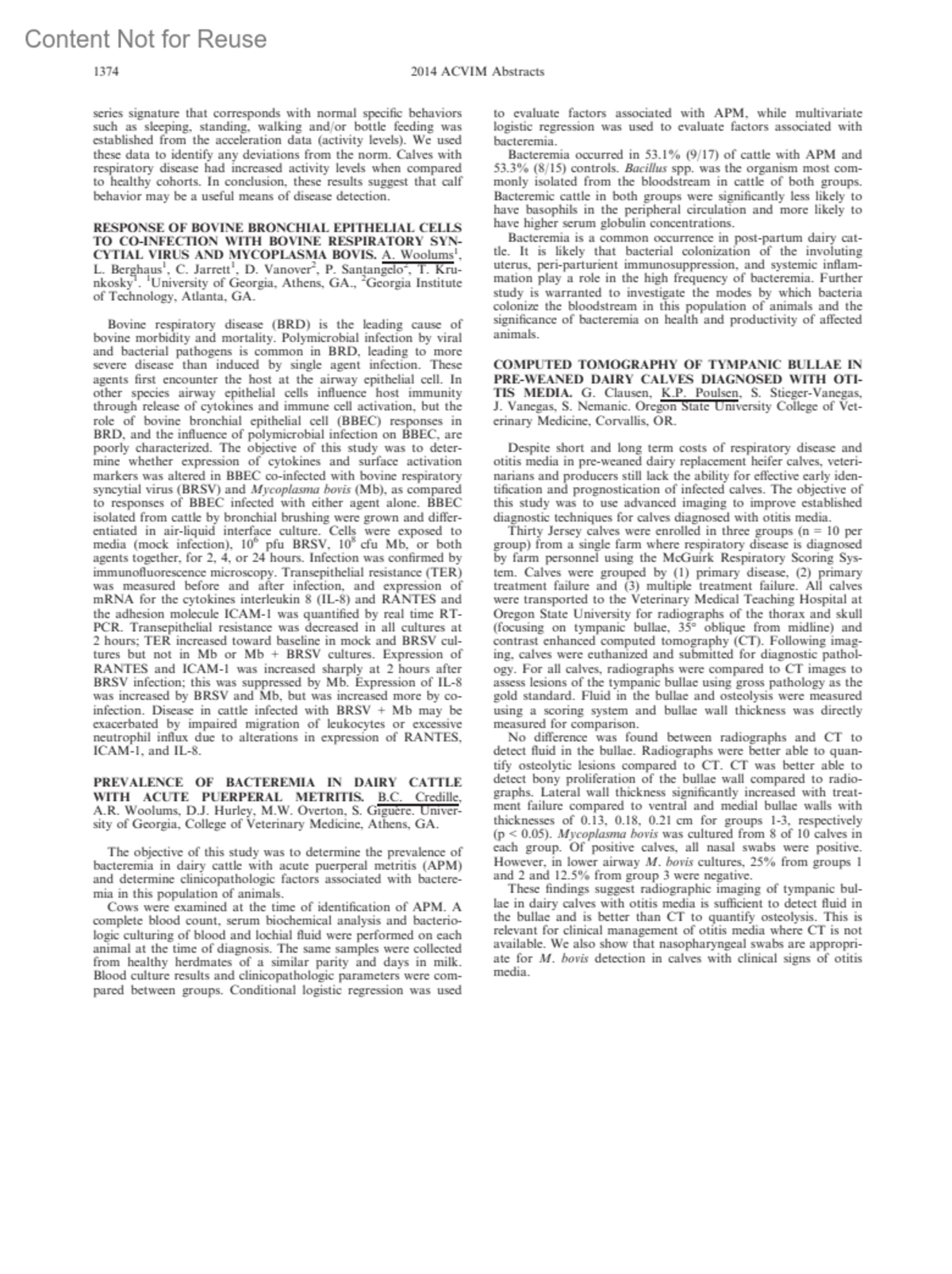 Journal of Veterinary Internal Medicine 28(4):p 1374, July-August 2014.
