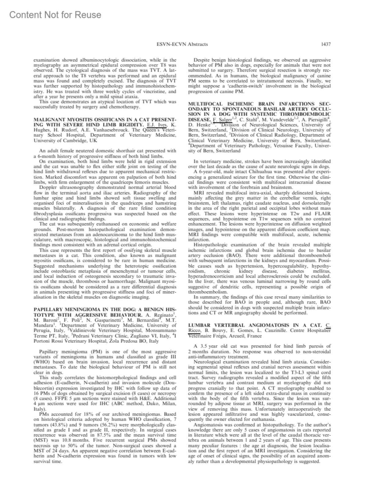 1Division of Neurological Sciences, University of Bern, Switzerland, 2Division of Clinical Neurology, University of Bern, Switzerland, 3Division of Clinical Radiology, Department of Clinical Veterinary Medicine, University of Bern, Switzerland, 4Department of Veterinary Pathology, Vetsuisse Faculty, University of Bern, Switzerland