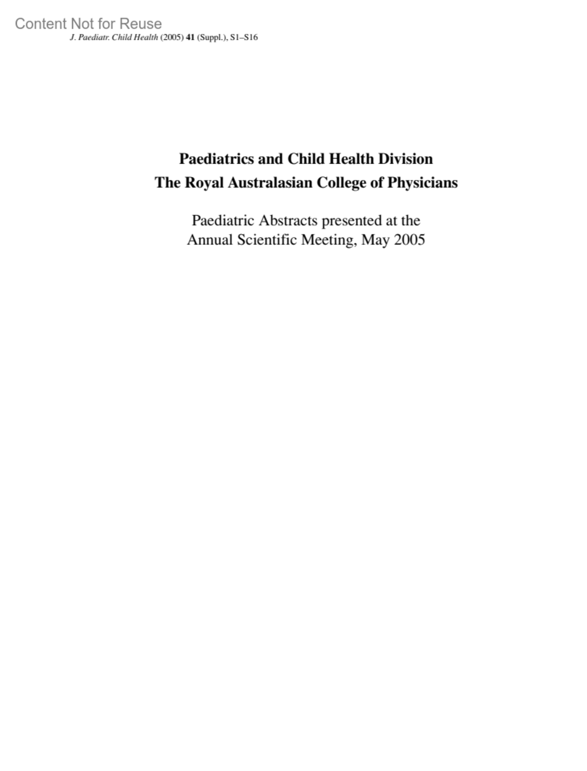 SAFE PRESCRIBING IN CHILDRENEFFECTIVE GUIDELINES IMPLEMENTATION CAN MAKE A DIFFERENCE TO PATIENT SAFETYGazarian, MGraudins, L VAuthor information1School of Women's & Children's Health, University of NSW2Sydney Children's Hospital, Randwick, NSWJournal of Paediatrics & Child Health 41(8):p S1-S2, August 2005.Copyright © 2005 Australian College of Paediatrics