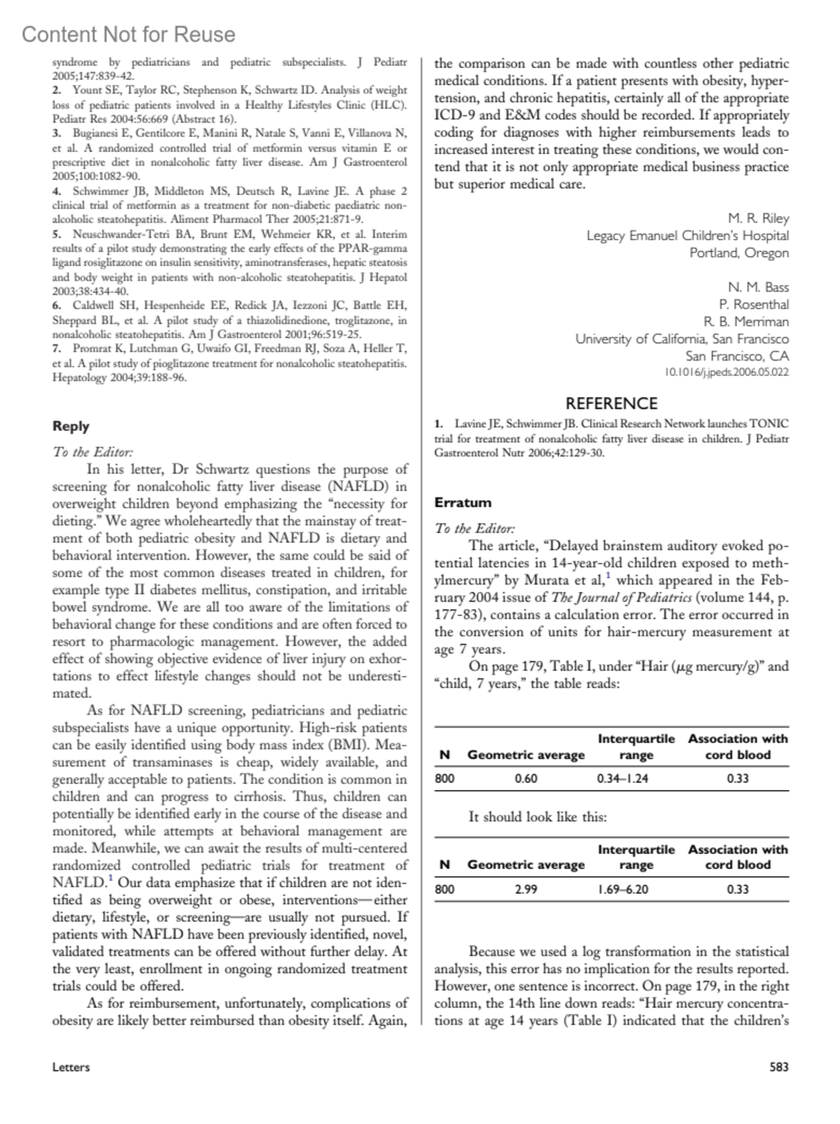 Pediatricians' IQ on RDS, NAFLD, and Syndrome XRiley, M. R.Bass, N. M.Rosenthal, P.Merriman, R. B.Author informationLegacy Emanuel Children's Hospital, Portland, Oregon (Riley)University of California, San Francisco, San Francisco, CA (Bass) (Rosenthal) (Merriman)Journal of Pediatrics 149(4):p 583, October 2006.Copyright © Mosby-Year Book Inc. 2006. All Rights Reserved.