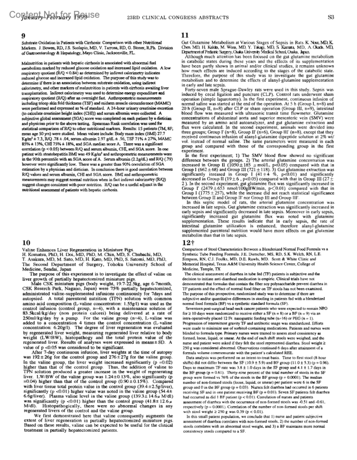 Journal of Parenteral and Enteral Nutrition 23(1):p S3, January-February 1999.