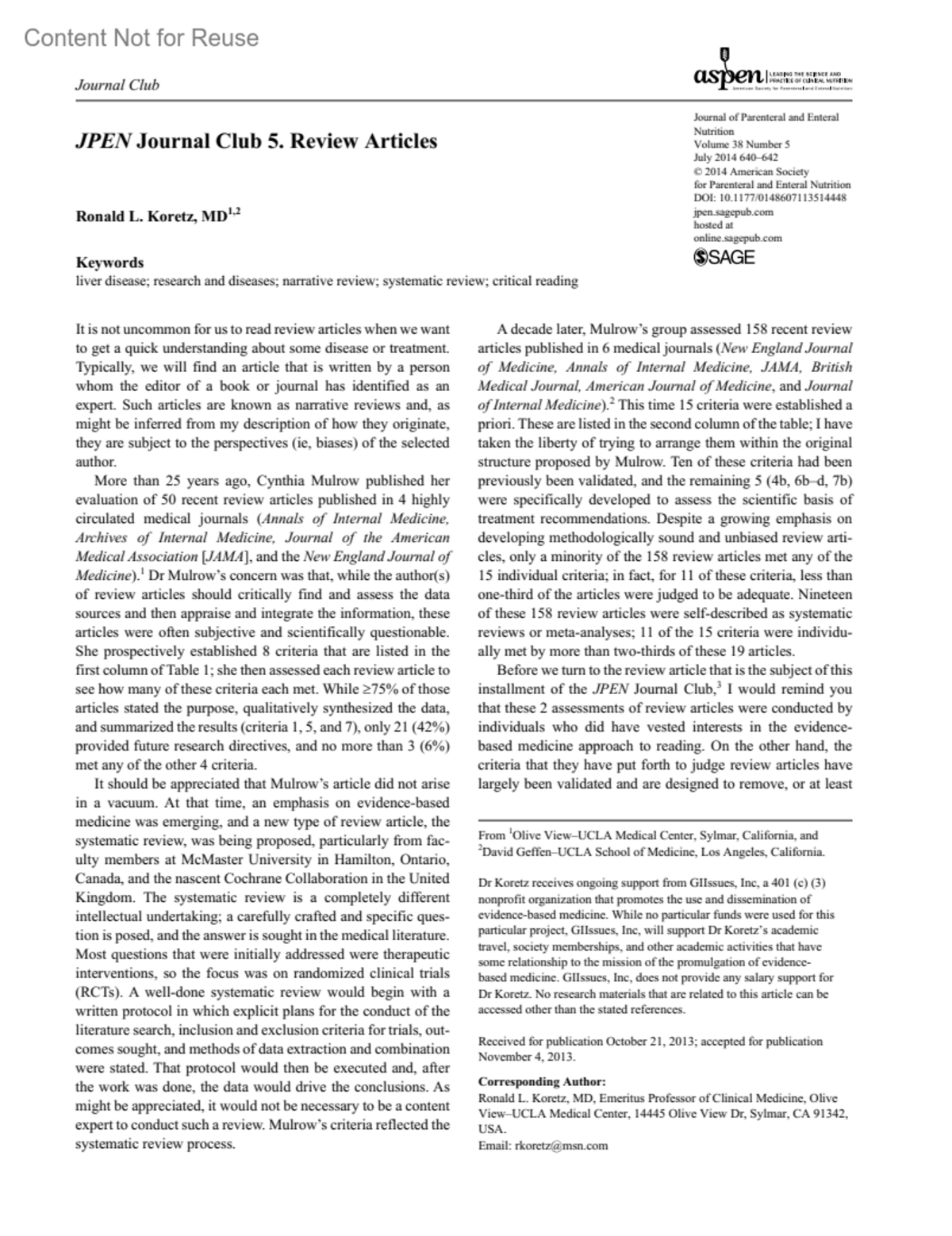 Dr Koretz receives ongoing support from GIIssues, Inc, a 401 (c) (3) nonprofit organization that promotes the use and dissemination of evidence-based medicine. While no particular funds were used for this particular project, GIIssues, Inc, will support Dr Koretz's academic travel, society memberships, and other academic activities that have some relationship to the mission of the promulgation of evidence-based medicine. GIIssues, Inc, does not provide any salary support for Dr Koretz. No research materials that are related to this article can be accessed other than the stated references.