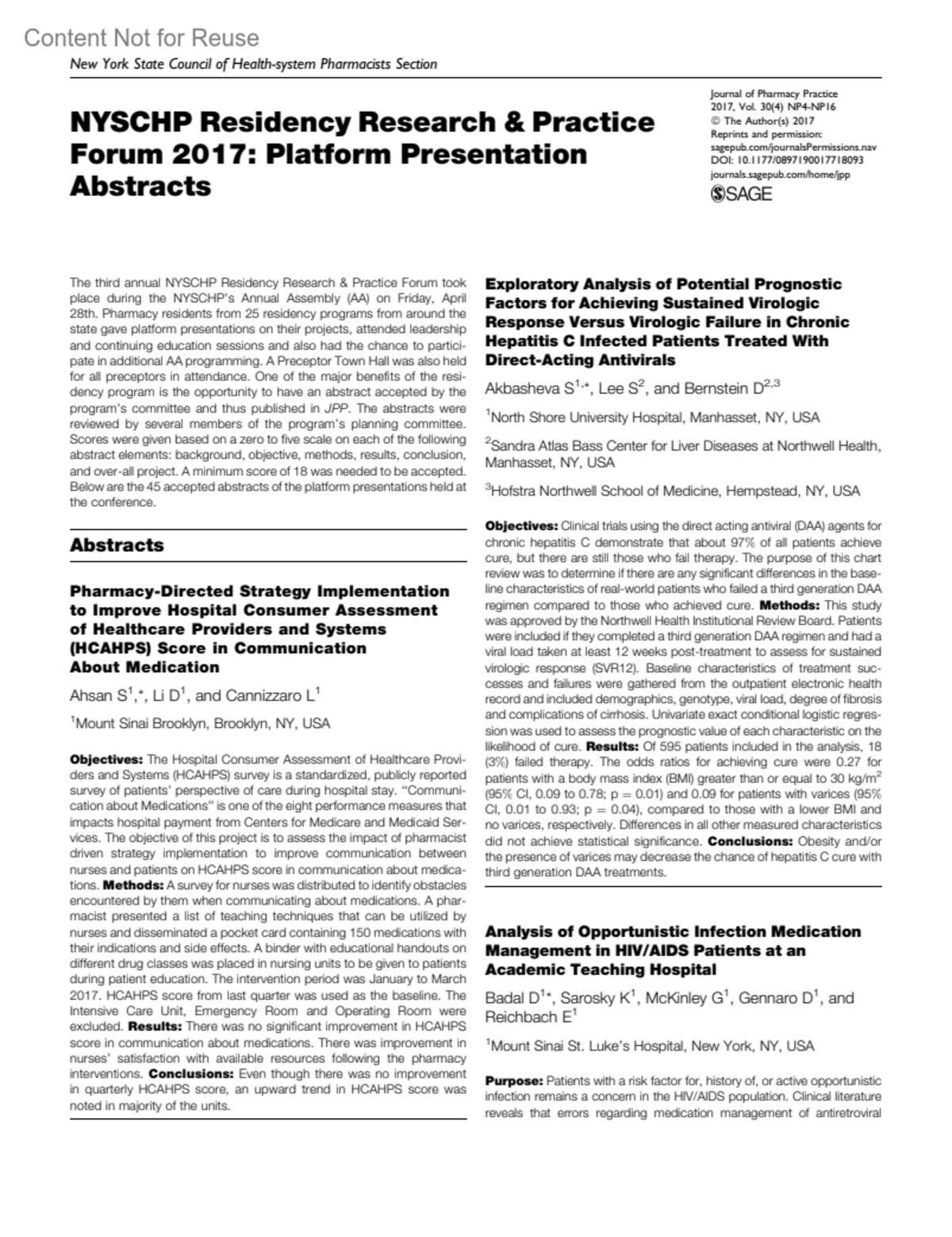 Journal of Pharmacy Practice 30(4):p N4-N16, August 2017. | DOI: 10.1177/0897190017718093