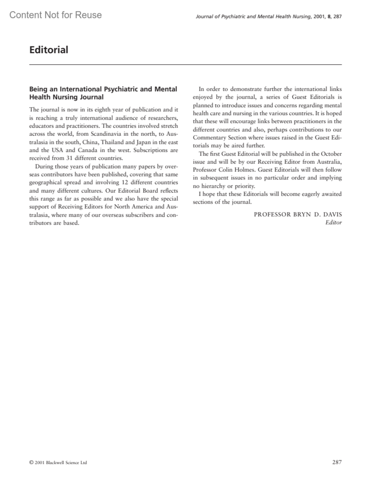 Journal of Psychiatric & Mental Health Nursing 8(4):p 287, August 2001.