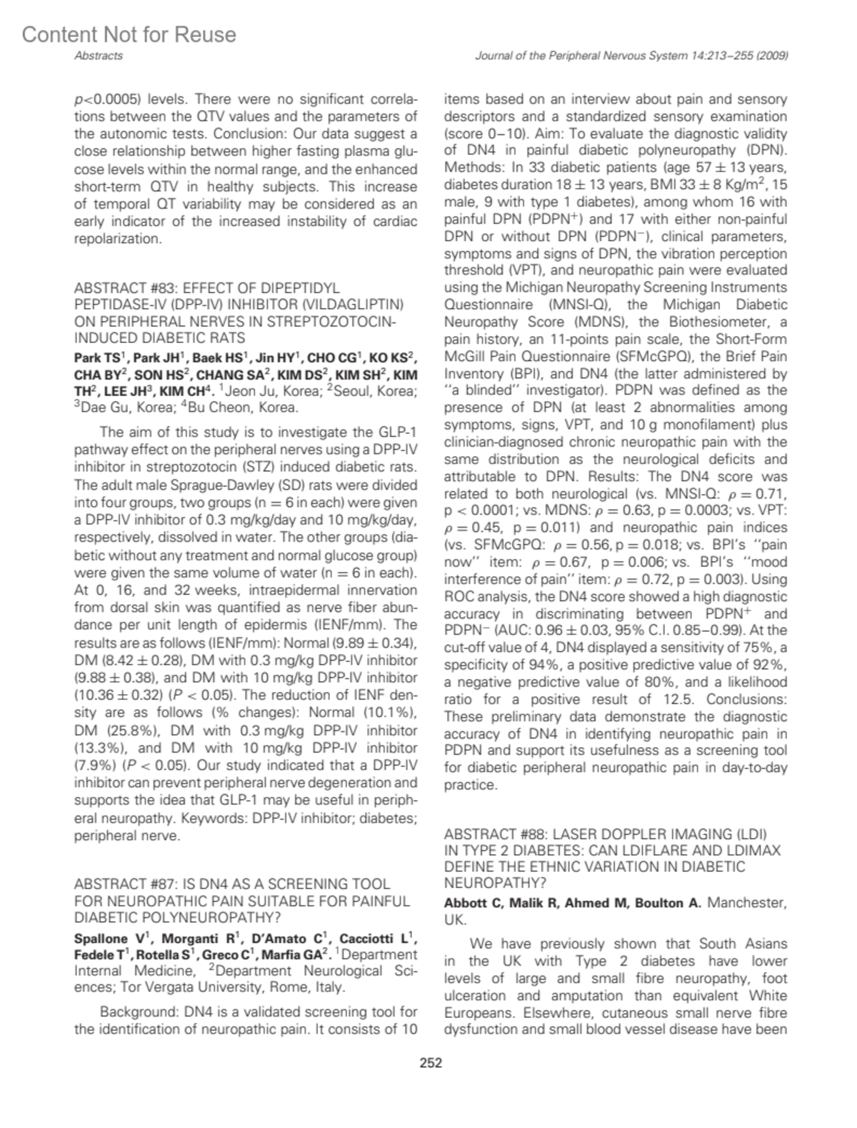 Journal of the Peripheral Nervous System 14(3):p 252, September 2009.