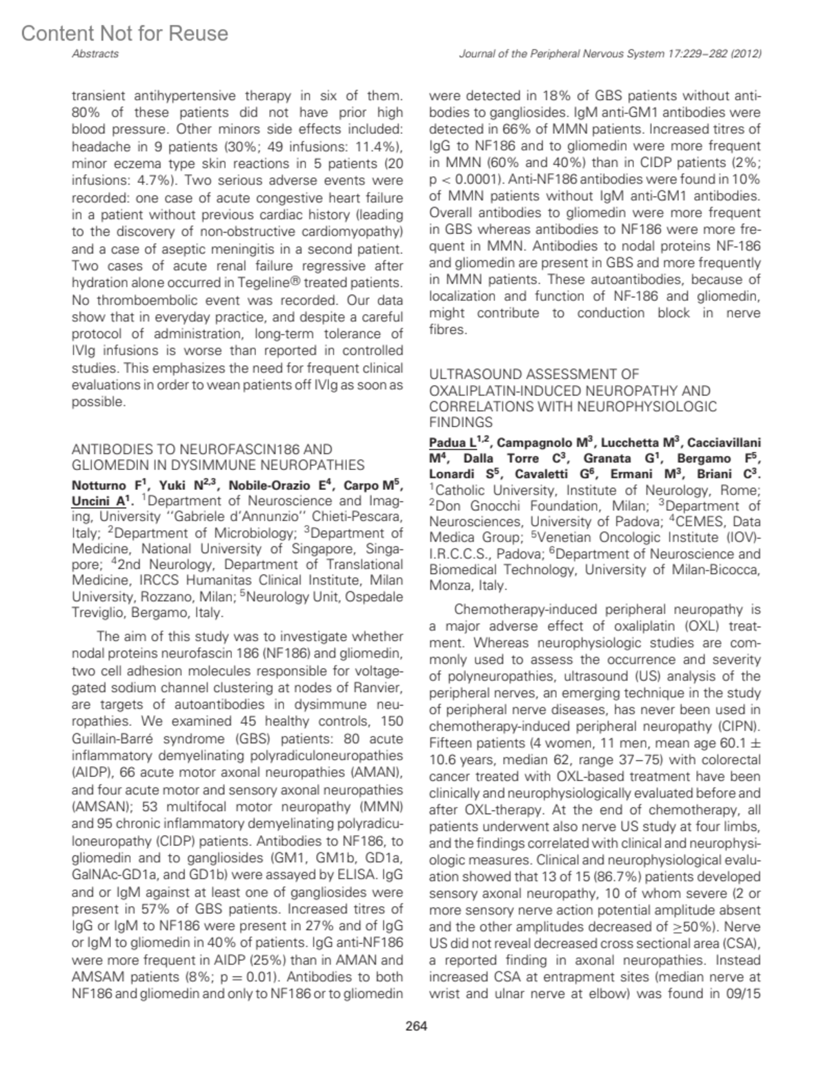 Journal of the Peripheral Nervous System 517(2):p 264-265, June 2012.