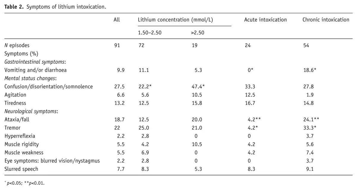Symptoms of lithium toxicity