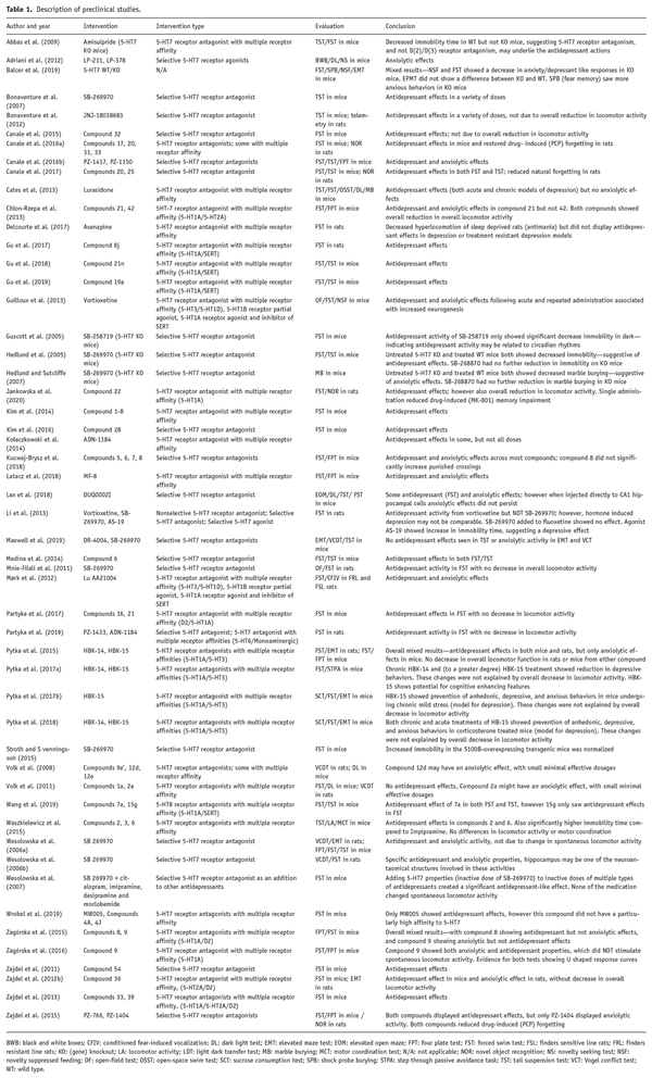 Despite the evidence for the potential role of the 5-HT7 receptor subtype in mood and anxiety disorders, this systematic review has several limitations.