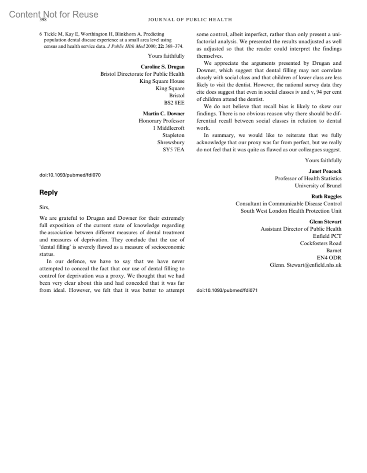 3Assistant Director of Public Health, Enfield PCT, Cockfosters Road, Barnet, EN4 ODR. [email protected]