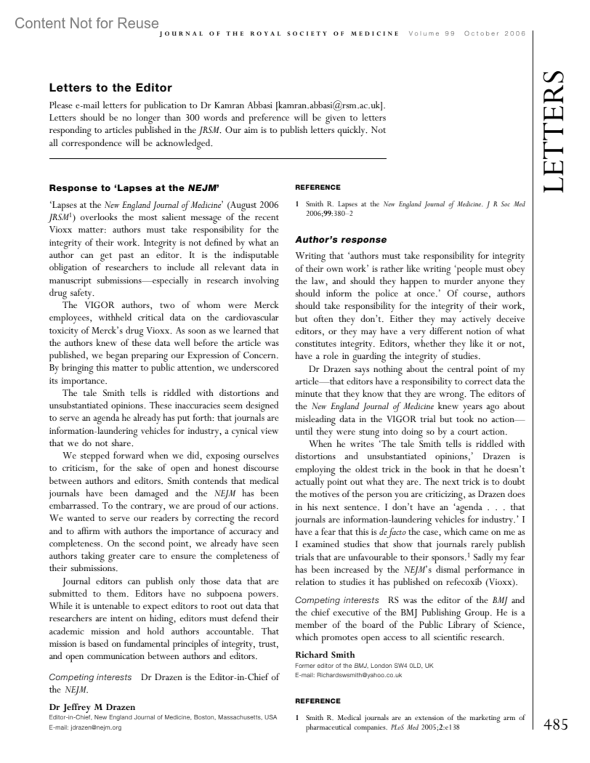 Journal of the Royal Society of Medicine 99(10):p 485, October 2006.