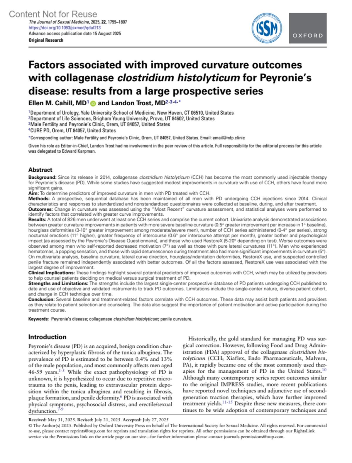 Factors associated with improved curvature outcomes with collagenase clostridium histolyticum for Peyronie’s disease