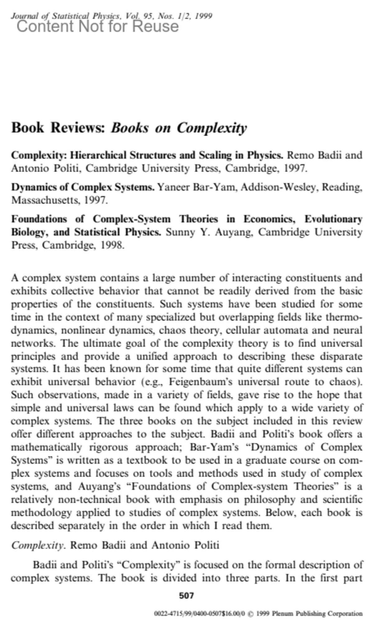 Journal of Statistical Physics 95(2):p 507-510, April 1999.