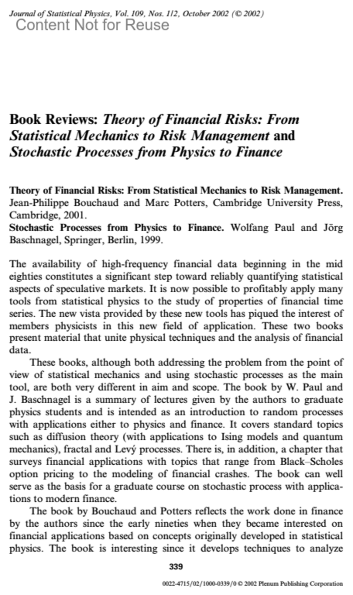 Jean-Philippe Bouchaud and Marc Potters, Cambridge University Press, Cambridge, 2001