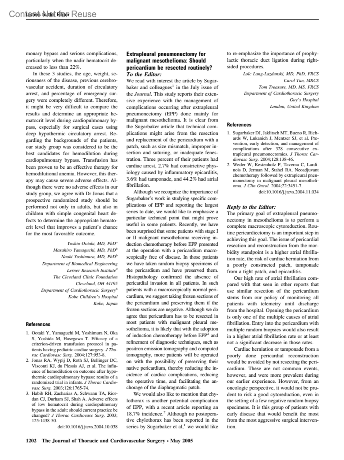 Journal of Thoracic & Cardiovascular Surgery 129(5):p 1202-1203, May 2005.