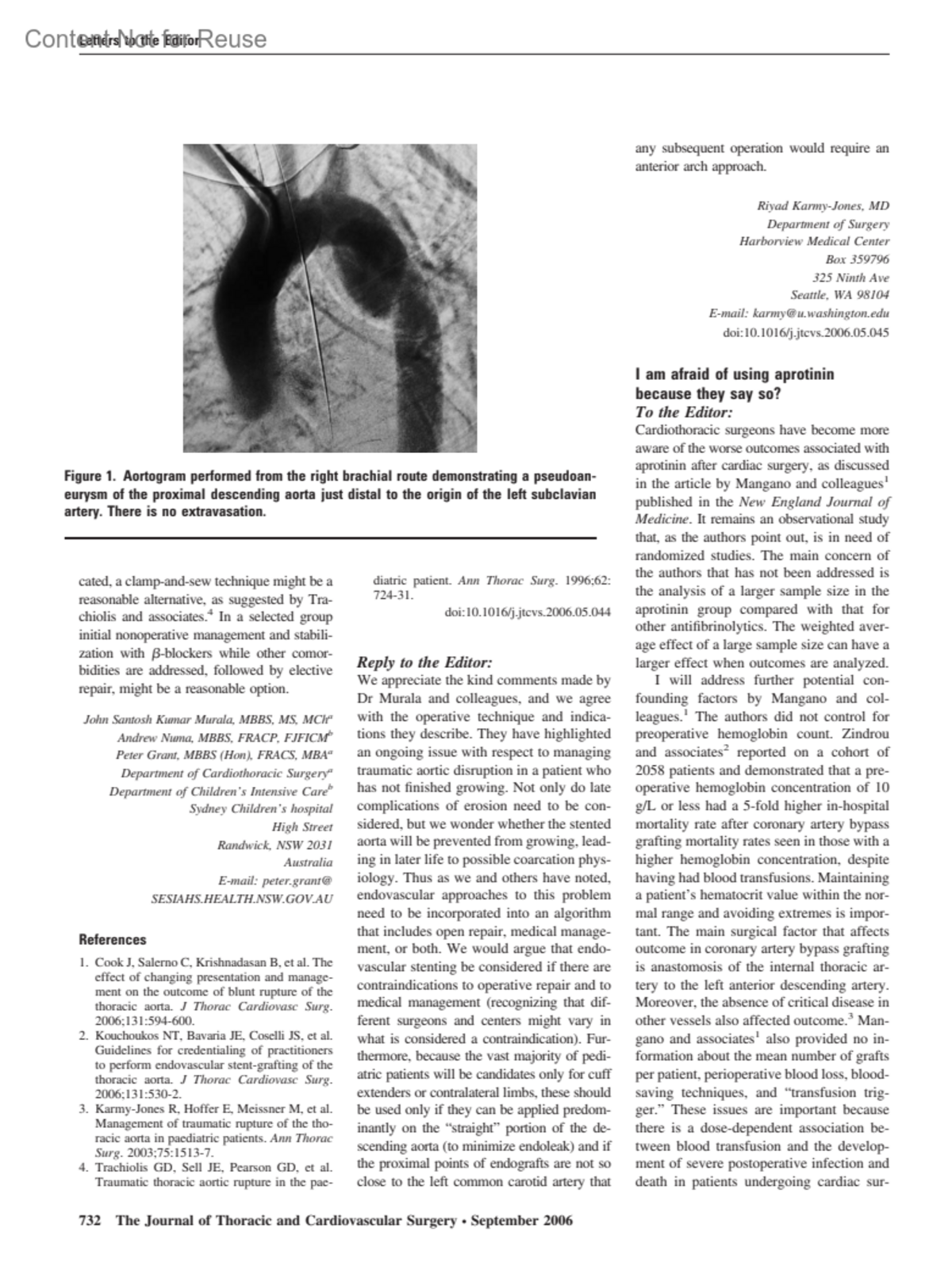 Journal of Thoracic & Cardiovascular Surgery 132(3):p 732, September 2006.