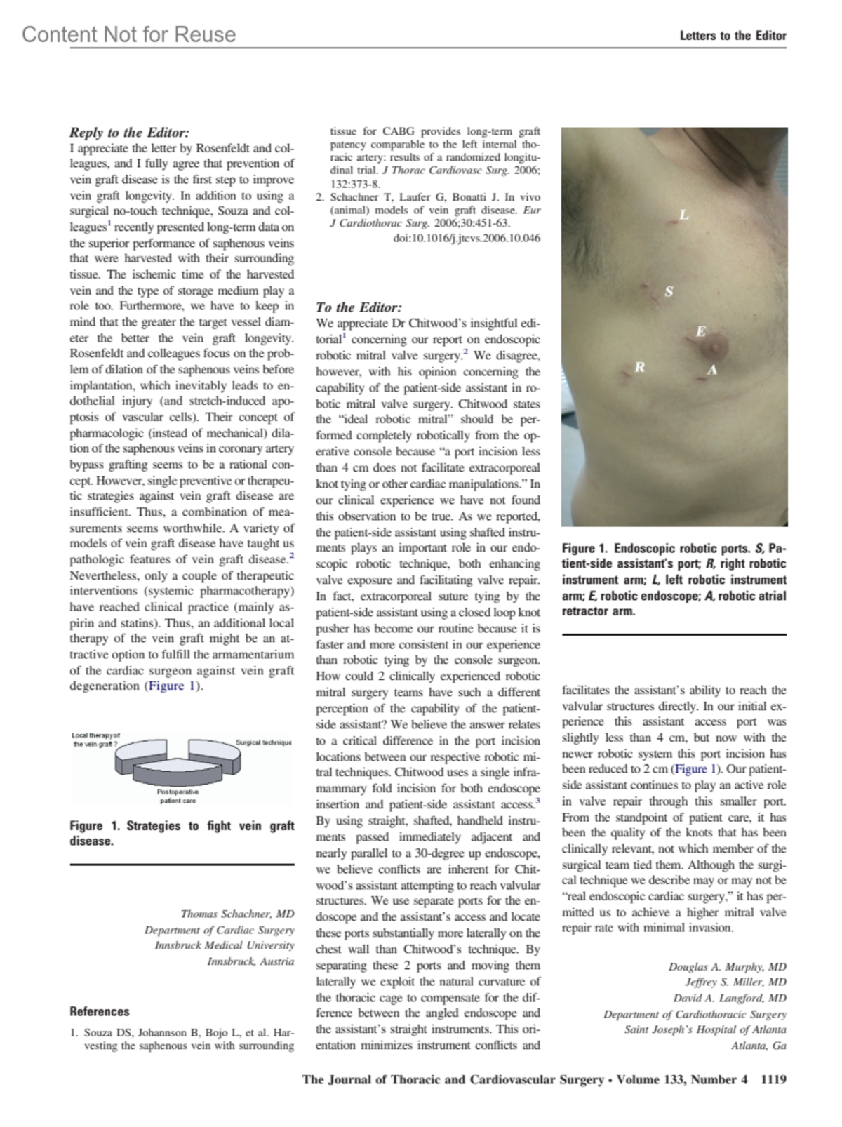 Journal of Thoracic & Cardiovascular Surgery 133(4):p 1119, April 2007.